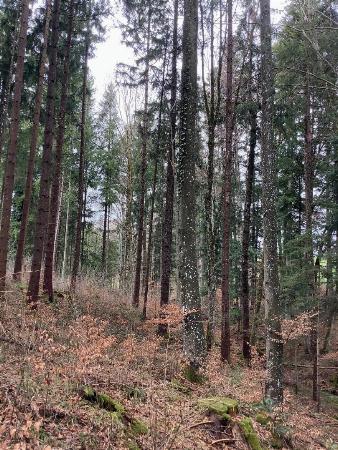Die Wiesenflächen haben eine Größe von ca. 1,8 ha und der Wald eine Größe von ca. 5000 m². Der Wald ist ein Mischwald mit Buche, Bergahorn, Weißtanne, ... einschließlich einer kräftigen Naturverjüngung. Durch den Wald verläuft ein natürlicher Flußlauf.